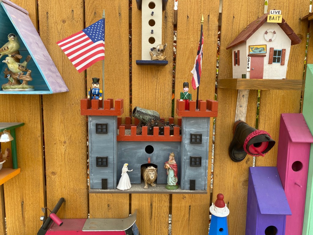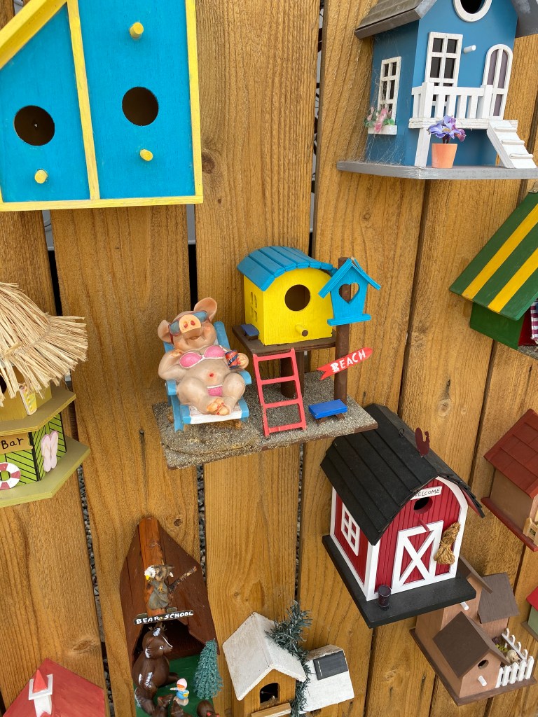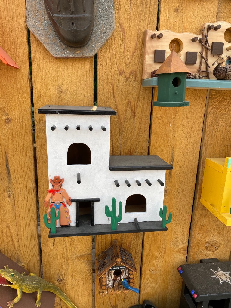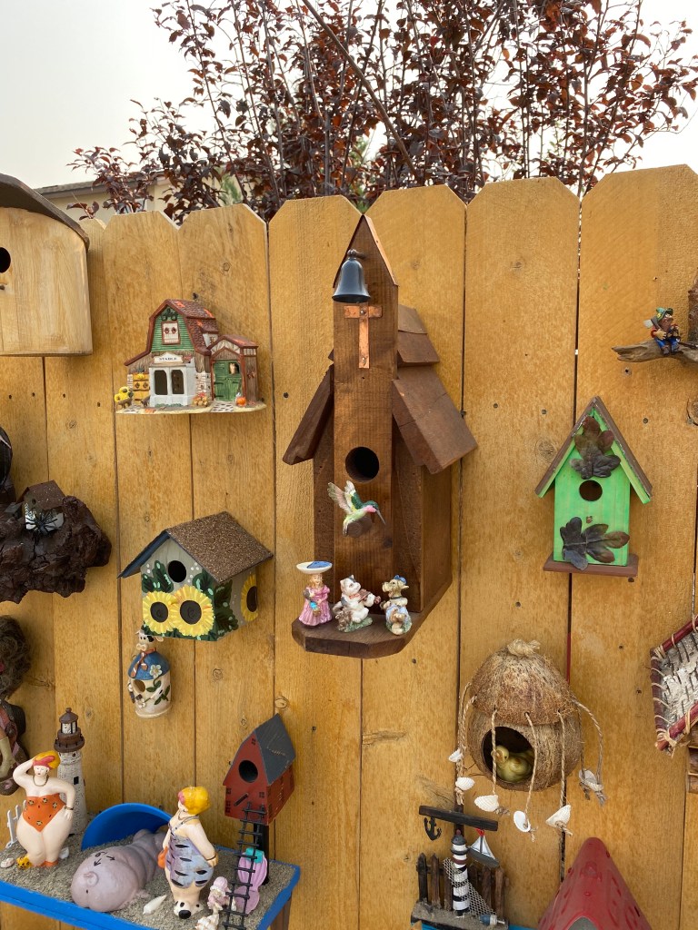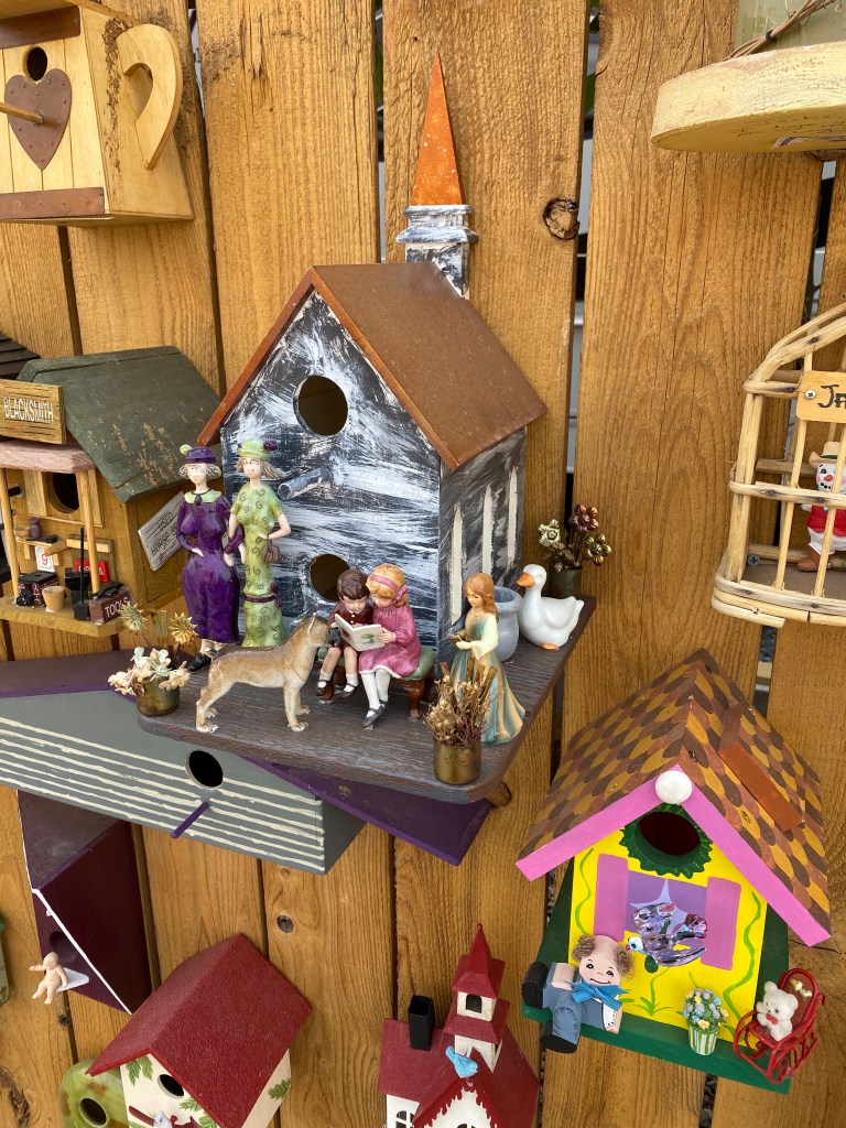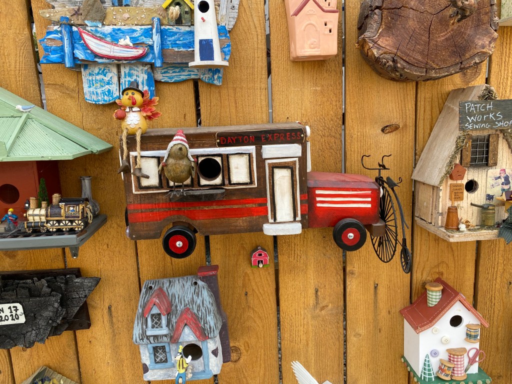 John told me some of his and his wife’s story, moving to the United States, running their own business, his love for hockey; and he also told me about a new found hobby for making these bird houses. He goes around to 2nd hand shops like Goodwill, and antique shops, and looks for things that spark his imagination for a bird house.