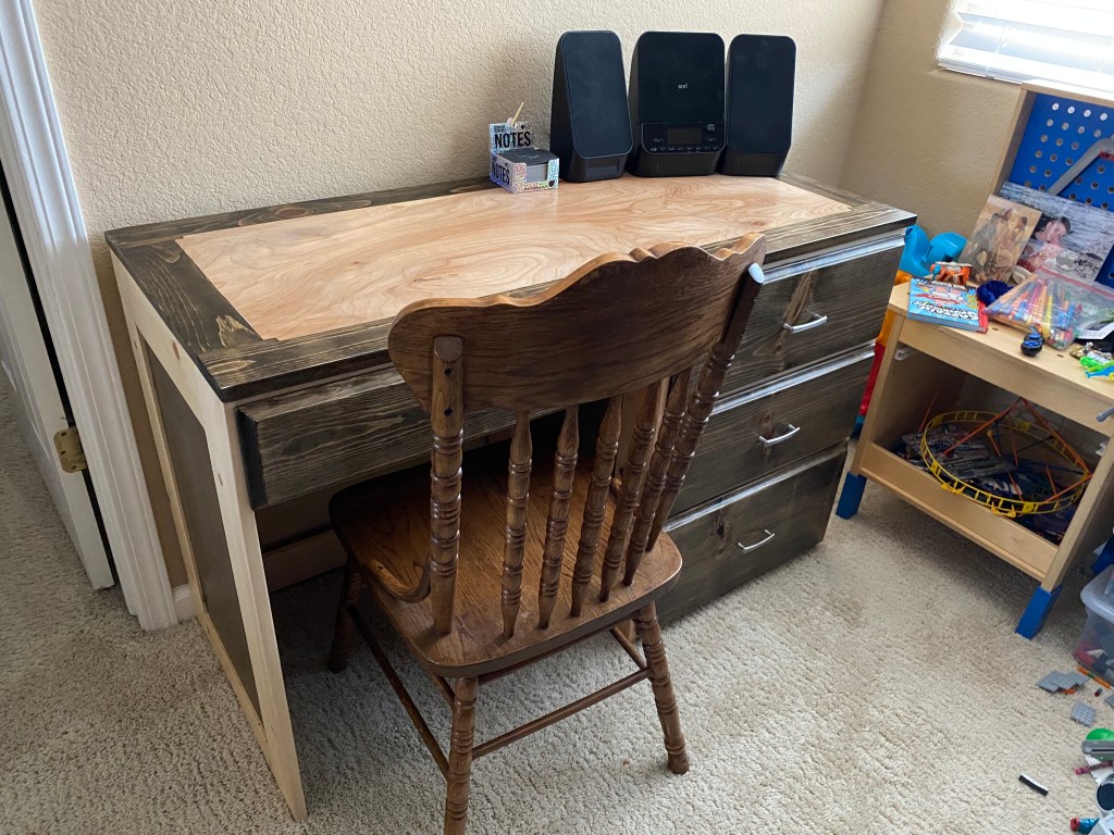 This last desk is my recent build. This one was a Christmas gift for my son who is just starting to come home with homework. He loves it.